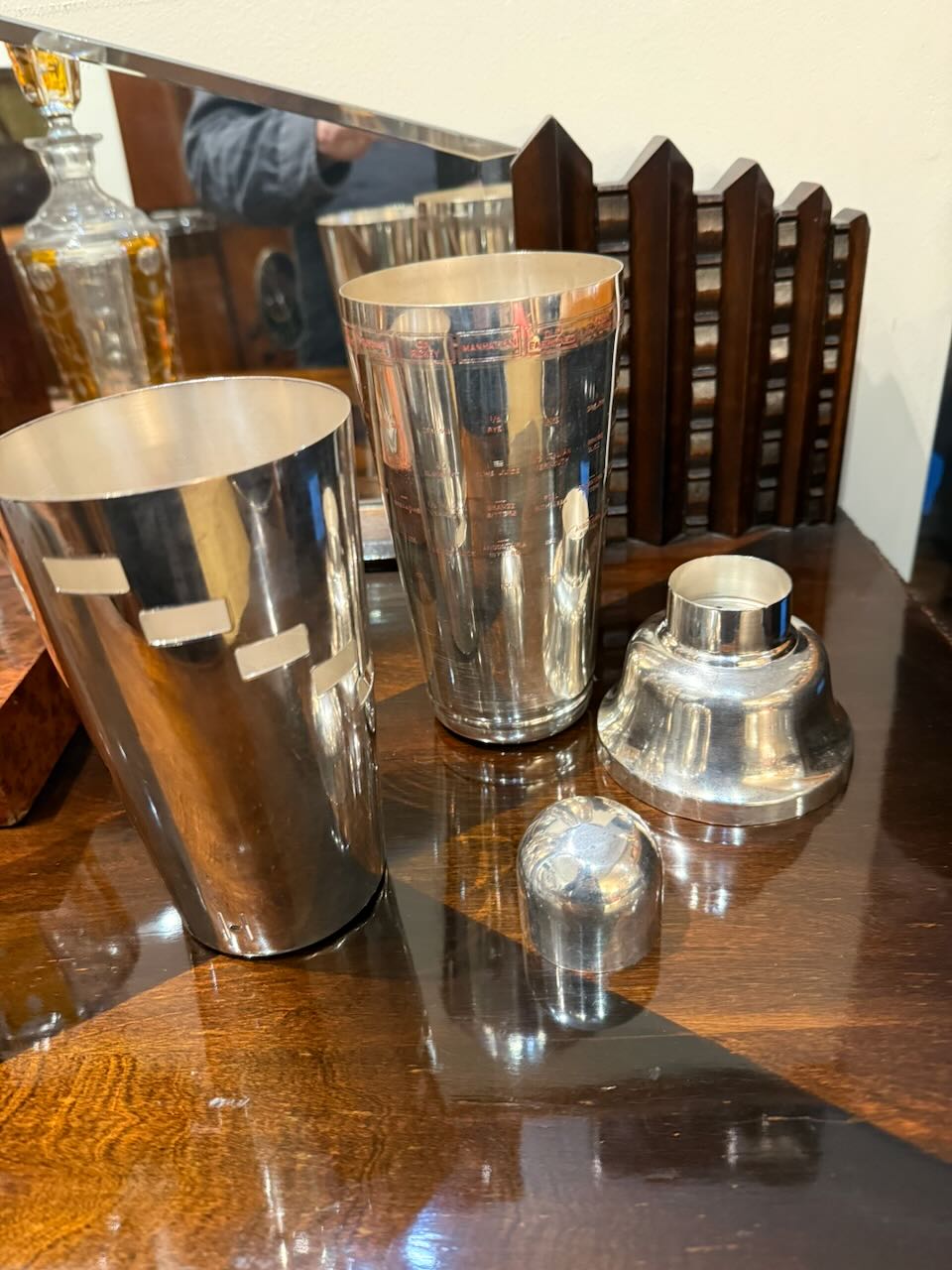 Designed and patented by Napier, a prominent American manufacturer, this shaker was produced in various versions throughout the 1930s. Our example, a silver model from 1935, bears the inscription “US and Foreign Patents Pending” on its base. In perfect condition inside and out, it swivels effortlessly and features a cap that doubles as a jigger, making it as functional as it is beautiful.