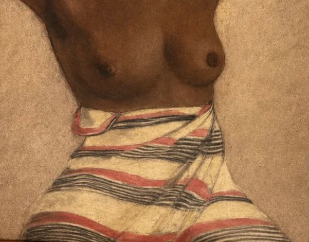 Charcoal and Watercolor Painting of an African Woman, Circa 1940s to 1960s