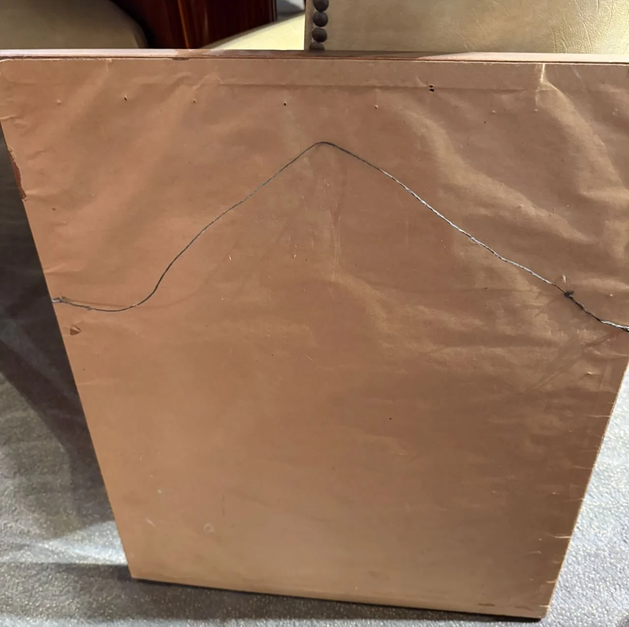 The overall perception of the piece is both decorative and emotionally direct. The woman’s jewelry, striped wrap, and carefully modeled features create a strong visual rhythm, while the muted background allows the figure to hold the full attention of the viewer. Presented in a warm wood frame that complements the earth tones of the painting, the work has a refined, collected quality that would sit comfortably in an Art Deco, mid century, or modernist interior.