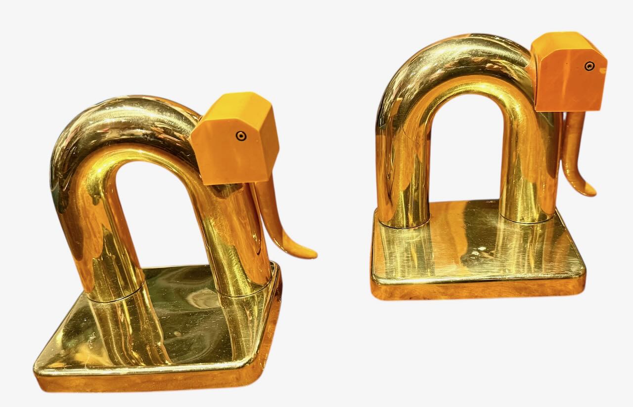 Walter Von Nessen Chase Elephant Bookends, American Art Deco Brass and Bakelite, 1931