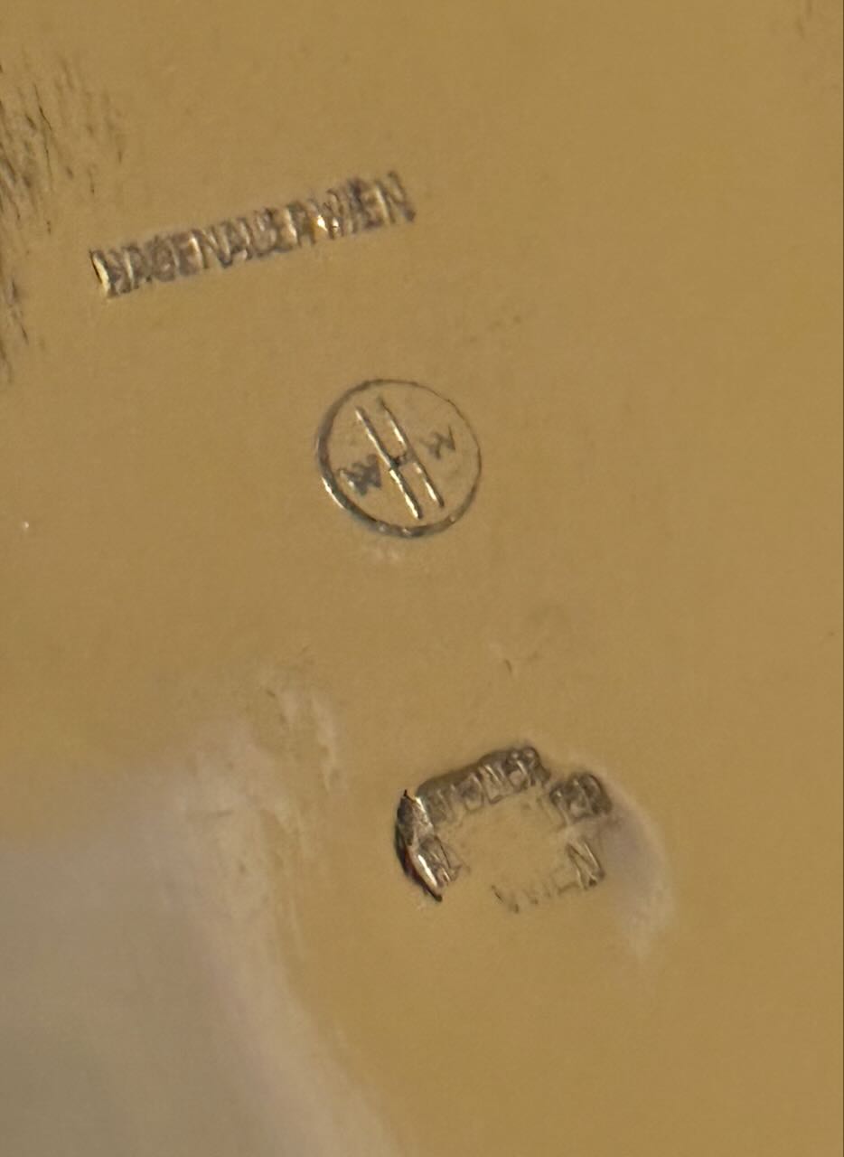 While Hagenauer’s work often features minimalist brass figures, this particular example is unique for its expressive treatment and scale. Variations of this design were produced in several combinations including all brass, silver and wood, and silver with copper. This version, with its luminous chrome and deep patina, is among the most visually striking and desirable.