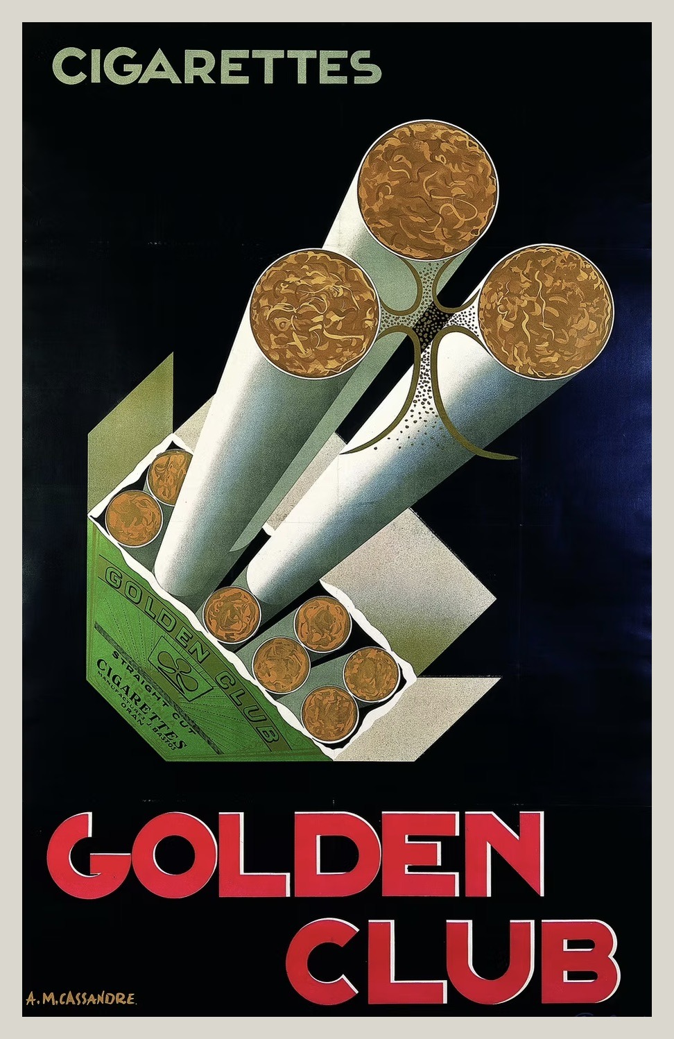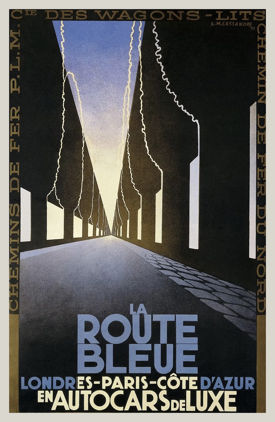 Adolphe Jean-Marie Mouron, known professionally as A.M. Cassandre, was born in 1901 in Kharkiv, Ukraine, and moved with his family to Paris before World War I. He studied at the Académie Julian, where he painted in an academic style influenced by Cézanne before shifting toward the modern movements transforming Europe. Inspired by Cubism, Futurism, and the emerging Bauhaus ideals, he developed a distinctly geometric and industrial approach to composition and typography. Around this time, he began signing his work as “Cassandre,” the name under which he would achieve international recognition. He saw advertising as a modern form of art capable of reaching a wide public, merging creative design with communication. His breakthrough came in 1923 with Au Bucheron, a bold poster for a furniture company that won first prize at the 1925 Paris Exhibition. The success of that design brought major commissions for travel posters, including the now-iconic Le Nord Express and Normandie. By the end of the 1920s, Cassandre had established himself as one of Europe’s most influential graphic artists and a defining voice of the Art Deco era.
