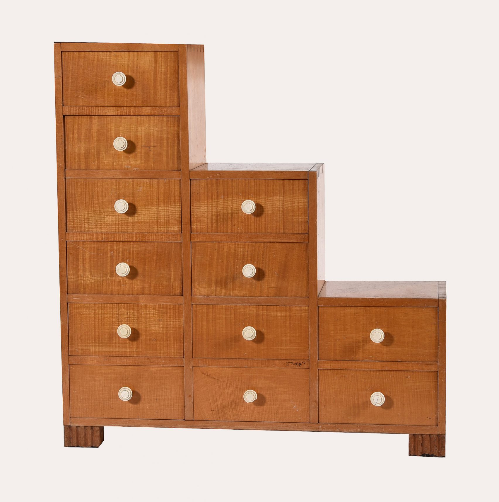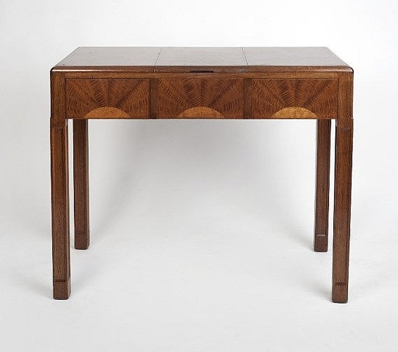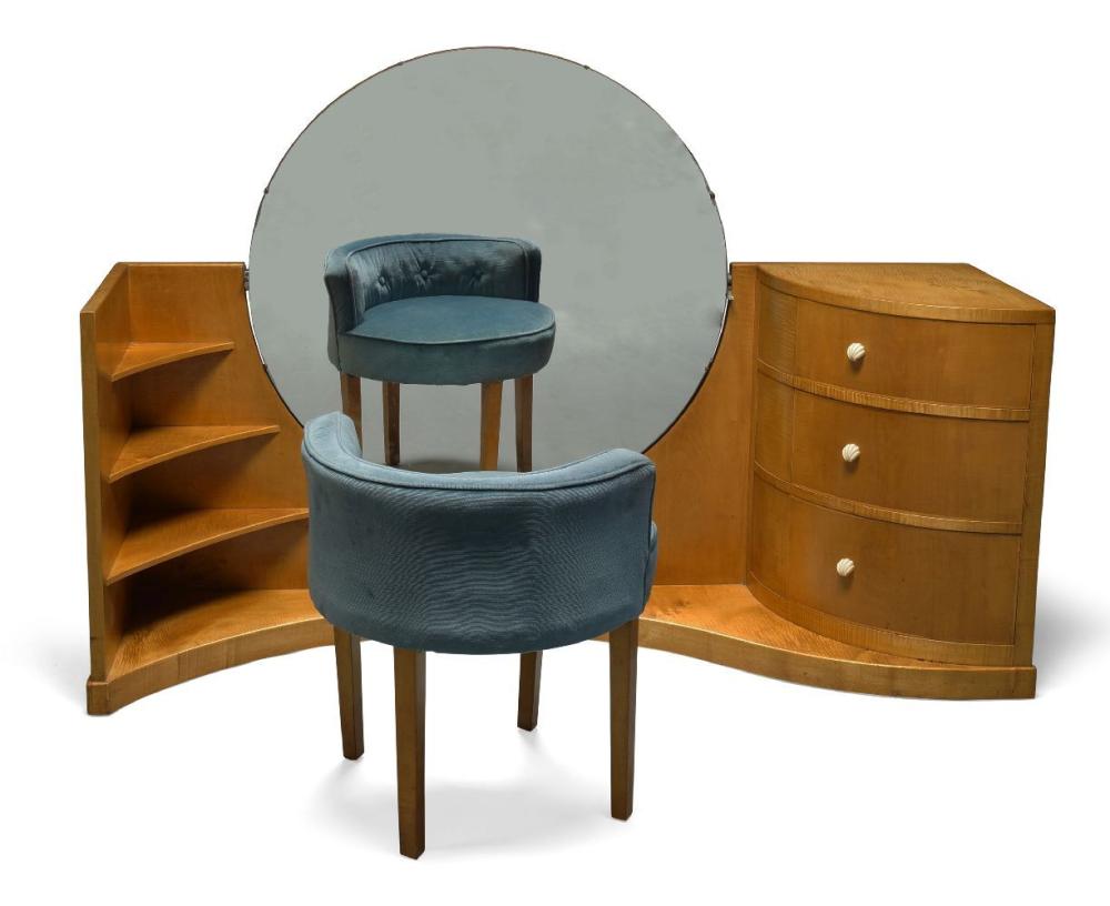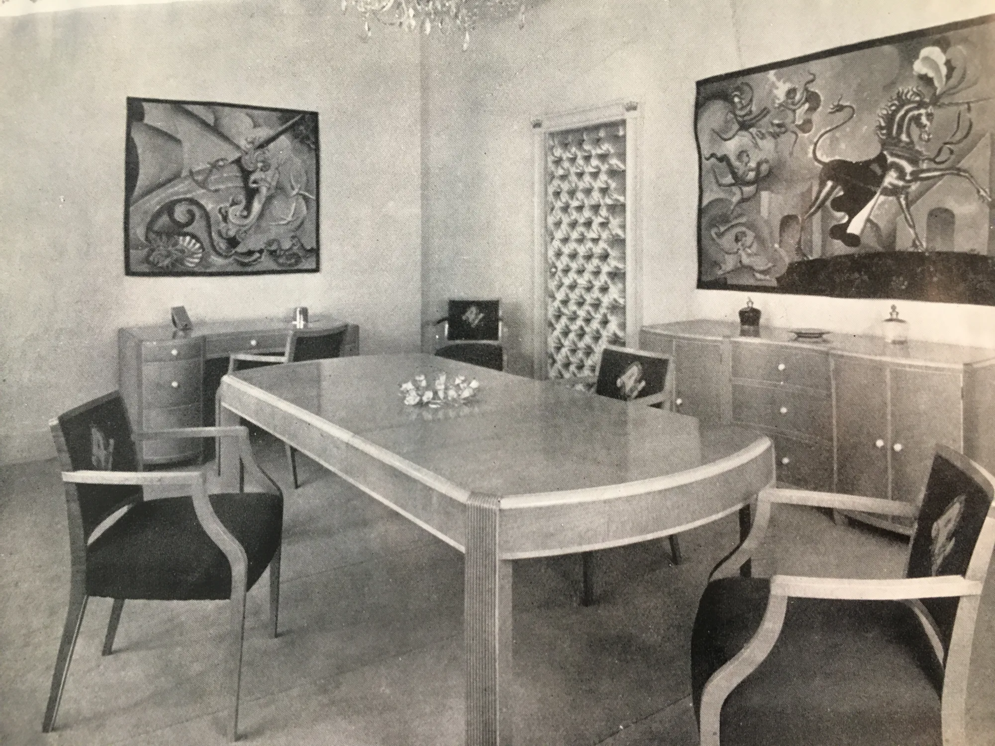 After returning to England following the First World War, Betty Joel struggled to find furniture that suited her modern sensibility. Instead of adapting existing pieces, she began designing and building furniture for her own home. Working without professional training, she created tables, chairs, beds, and rugs that reflected a streamlined modern aesthetic. Friends admired her work and encouraged her to produce pieces for a wider audience. In 1921, she founded Betty Joel Ltd, opening a showroom at 177 Sloane Street in London. She employed highly skilled craftsmen who had previously worked as yacht fitters, bringing precision woodworking techniques into her furniture. Each piece was carefully constructed using advanced joinery and finished to exacting standards. Joel expanded her business in 1927 by relocating to a large showroom and factory at 25 Knightsbridge. The space functioned as both a retail environment and a production workshop, employing more than eighty people at its peak. Her work was widely exhibited and attracted elite clients, including aristocrats, hotels, and ocean liners. In 1939, following the collapse of her marriage, she abruptly left the business and never returned to design.