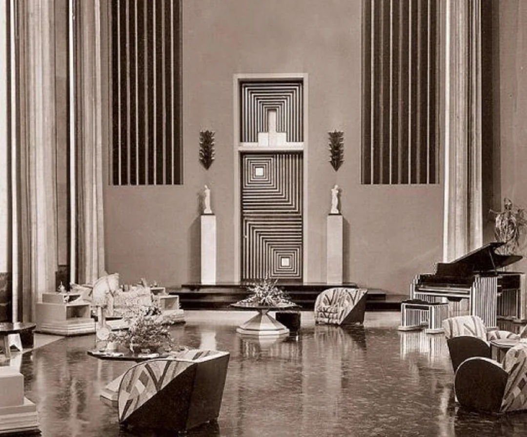 Cedric Gibbons’s style is defined by glamour, symmetry, and refined modernity. He favored elegant interiors with clean lines, polished surfaces, and dramatic spatial control. His work often translated Art Deco ideas into cinematic form without making them feel stiff or purely decorative. Lighting, texture, and architectural rhythm were central to the mood of his sets. Even his home with Dolores del Rio showed the same instinct for sleek luxury and theatrical beauty.