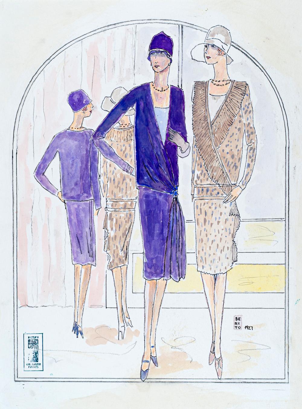 Eduardo García Benito was born in 1891 in the town of Valladolid, Spain, and showed artistic talent from a very early age. He studied at the Mignon studio and later trained under the guidance of Daniel Vierge. In 1912, he won a scholarship from the town council of Valladolid to study at l’École des Beaux-Arts in Paris, where he immersed himself in the city’s vibrant art and fashion scene. By 1915, he had participated in his first group exhibition at the Galerie du Faubourg Saint-Honoré, and over the next five years, he continued to exhibit his artwork. In 1921, he achieved the prestigious title of Sociétaire of the Salon. Benito made his living in Paris painting society portraits, including those of Paul and Denise Poiret, and illustrating fashions in the Gazette du Bon Ton, a Parisian fashion journal published by Lucien Vogel. He belonged to Vogel’s exclusive group of artist-illustrators known as the “Beaux Brummels of the Brush,” which also included Georges Barbier, Charles Martin, Bernard Boutet de Monvel, Pierre Brissaud, Georges Lepape, and André Marty. In addition to his fashion work, Benito was a skilled portrait painter whose subjects included King Alfonso XIII of Spain and members of the Chinese royal family.
