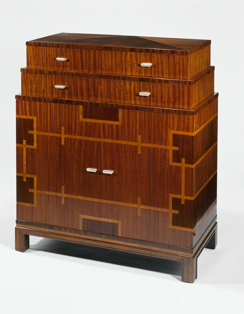 Schoen’s style balanced Viennese structure with French luxury and American urban energy. He favored rich veneers, exotic woods, softened curves, and precise geometry. At his boldest, he used Bakelite, bronze, Monel, black surfaces, and stepped forms that echoed the Manhattan skyline. Even when his furniture was glamorous, it remained controlled and architectural rather than merely decorative. His best work gave American Art Deco a refined metropolitan character that felt both international and unmistakably New York.
