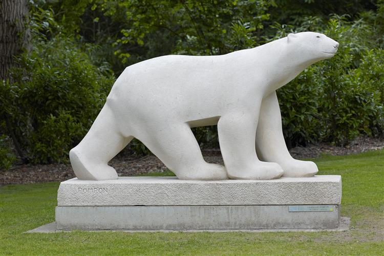 Pompon studied animal sculpture under Pierre Louis Rouillard at the École nationale supérieure des arts décoratifs. To earn a living, he worked as a skilled assistant for major sculptors, including Antonin Mercié, Alexandre Falguière, and René de Saint-Marceaux. For several years, he also worked in the studio of Auguste Rodin, gaining valuable experience in professional sculptural practice. Pompon first exhibited at the Paris Salon in 1879 with a sculpture of Cosette from Victor Hugo’s Les Misérables. Despite regular Salon participation, his work received only modest attention for decades. Around the early twentieth century, he began concentrating almost entirely on animal sculpture. He studied animals closely at the Jardin des Plantes in Paris, observing their anatomy and movement. Recognition finally came in 1922 when he exhibited Ours blanc at the Salon d’Automne. The sculpture’s powerful simplicity attracted widespread acclaim and established his reputation at the age of sixty-seven. After this breakthrough, Pompon produced several major works, including Grand Cerf and Taureau. Near the end of his life, he donated nearly three hundred works to the museum in Dijon.