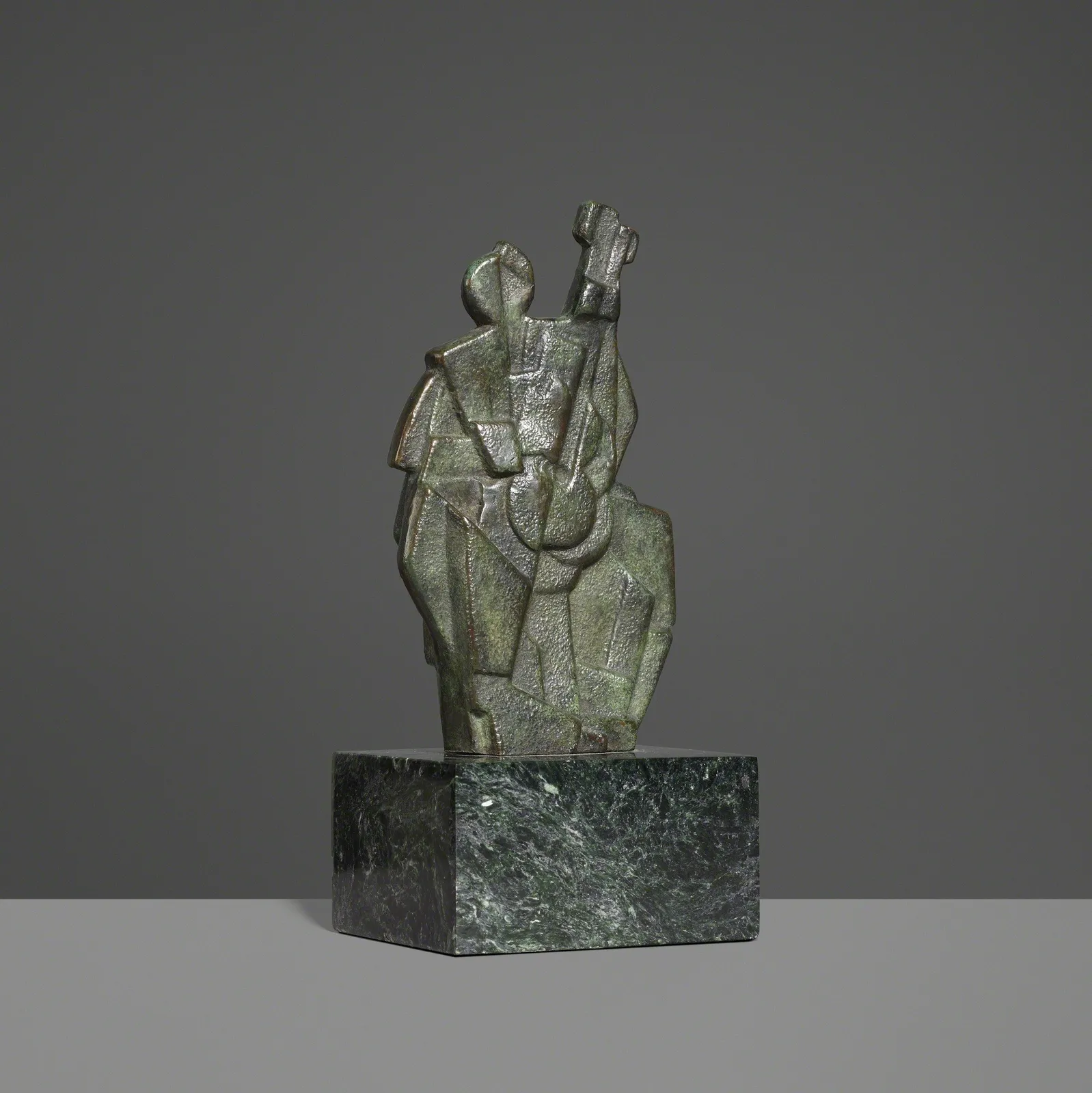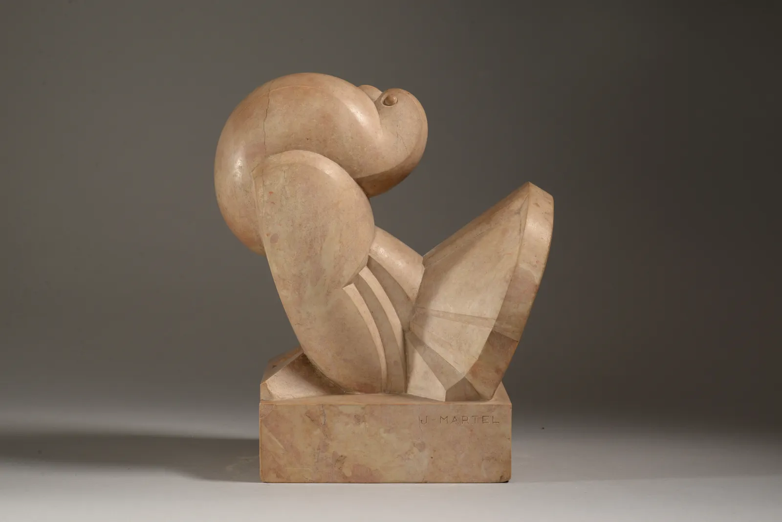 Jan and Joël Martel were identical twin brothers born on March 5, 1896, in Nantes, France. The pair moved to Paris in 1906, where they completed their secondary education before studying under sculptor Pierre Vigoureux beginning in 1911. The following year, they enrolled at l’École Nationale des Arts Décoratifs. The brothers shared a single workshop throughout their careers and co-signed all of their compositions simply as “J. Martel,” making their individual contributions virtually indistinguishable. Between 1924 and 1926, architect Robert Mallet-Stevens designed a studio for the twins at 10 Rue Mallet-Stevens in Paris’s 16th arrondissement. They were named knights of the Legion of Honor in 1936 and commanders of Cultural and Artistic Merit. The Martels were among the founding members of the Union des Artistes Modernes. Jan died on March 16, 1966, in Lille after a long illness, and Joël followed roughly six months later on September 25, 1966, in Paris as the result of an accident.