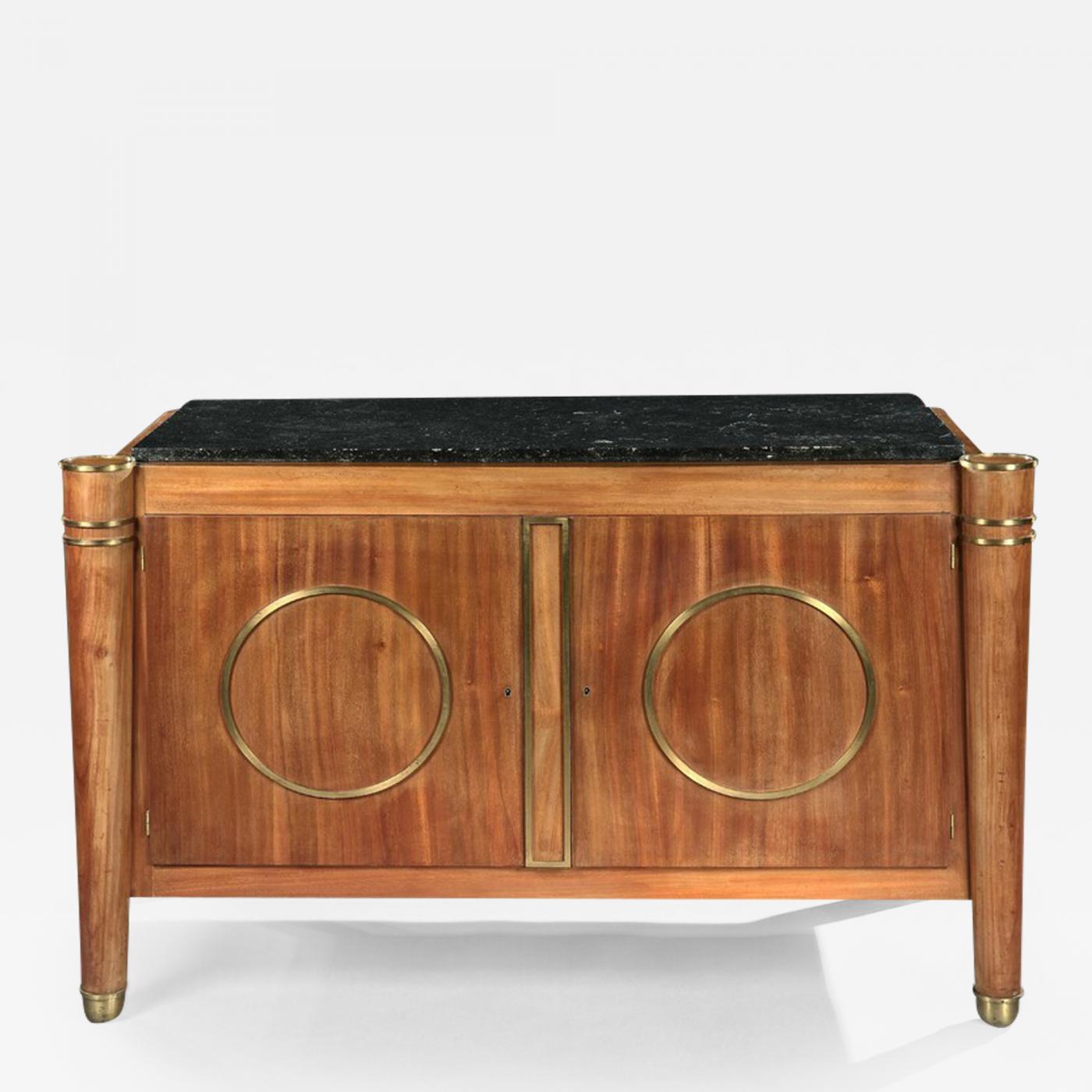 Jules Leleu was born in 1883 into a long line of artisans and decorators, and he carried the legacy of Maison Leleu into the modern era with a blend of tradition and innovation. He studied sculpture in Brussels and at the École des Beaux Arts, giving him a deep understanding of materials that later informed his furniture designs. After taking over his family’s business with his brother Marcel in the early 1900s, he expanded it into a full decorating and cabinetmaking firm that quickly gained attention in Paris. His breakthrough came in the early 1920s when his furniture was shown at major Paris Salons, where critics praised his refined forms and expert use of rare veneers. In 1925 he won a Grand Prix at the Exposition Internationale des Arts Decoratifs, which established him as one of the key voices of the emerging Art Deco movement. His firm grew rapidly, producing not only furniture but rugs, lighting, lacquerwork, and custom interiors for a rising elite clientele. By the late 1920s he had opened a major showroom in Paris, positioned himself among the foremost designers of the age, and began receiving commissions from aristocrats, diplomats, and industrialists. Maison Leleu became a true family enterprise, and his children eventually joined the firm and helped carry the style forward for decades.