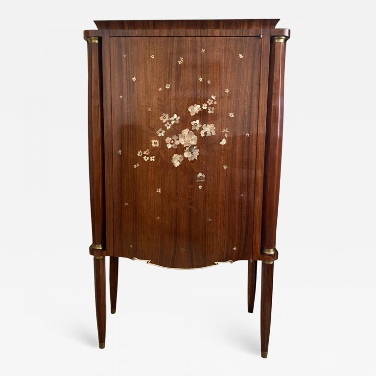 Leleu’s career was remarkable for its longevity and its ability to evolve with changing tastes while maintaining a clear and consistent identity. In the 1920s his work featured sensual curves, rich woods, ivory inlays, and a level of craftsmanship that invited comparison to Ruhlmann, even though his own voice was quieter and more restrained. During the 1930s he embraced the new modernist vocabulary, creating pieces that were more geometric, more minimal, and often accented with nickel plated metal or lacquer. His reputation was strengthened by major commissions for ocean liners like the Île de France, Atlantique, Normandie, and later the France, each of which showcased his mastery of luxury interiors on a grand scale. He also designed important institutional spaces, including rooms for the League of Nations, the Sorbonne, embassies, and the Elysée Palace. After the Second World War he adapted again, using new materials like fiberglass, aluminum, and synthetic lacquer to meet shifting tastes and new production demands. His postwar work retained the refinement of earlier decades but showed a sharper and more linear profile that aligned with mid century ideals. Although he died in 1961, Maison Leleu continued under his children and preserved a level of quality and coherence that kept his legacy alive well into the 1970s.