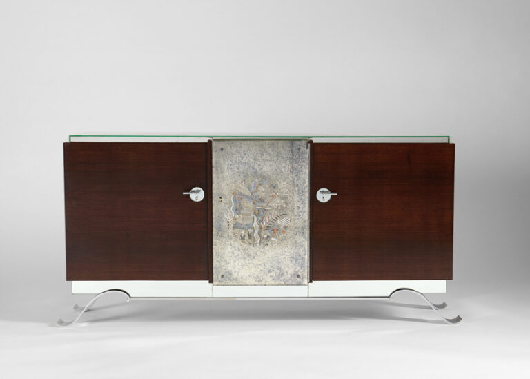 Leleu’s designs balanced classical French elegance with the clarity and control of modern geometry. He favored exotic woods, lacquer, and ivory inlays that added depth and texture without overwhelming the form. His orchestrated use of curves and straight lines gave his furniture a sense of calm proportion and quiet luxury. Metal details, marquetry, and carefully chosen veneers allowed him to explore richness in a subtle and disciplined way. Across decades of change he remained committed to impeccable craftsmanship and harmonious design.