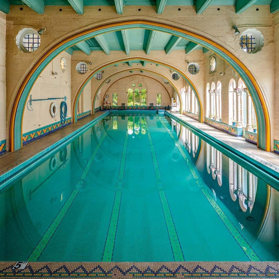 Morgan’s early career was shaped by her mastery of reinforced concrete, which proved critical after the 1906 San Francisco earthquake. Her reputation grew rapidly as many of her buildings survived seismic events with little damage. She worked extensively for institutions serving women, including YWCA buildings and college campuses. One of her most celebrated commissions was Hearst Castle in San Simeon, a decades-long collaboration with William Randolph Hearst. The project combined classical, Mediterranean, and historic European influences at monumental scale. In addition to large estates, she designed churches, schools, hospitals, and private residences throughout California. In Berkeley, she designed the Berkeley Women’s City Club, including its celebrated indoor swimming pool. The pool is often noted for its light-filled arcades, Art Deco tilework, and serene architectural balance. Her practice remained active until her retirement in 1950.
