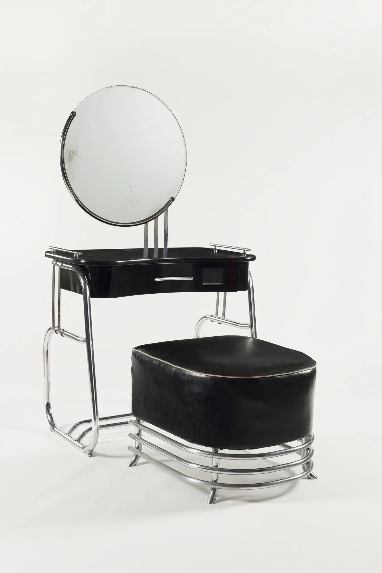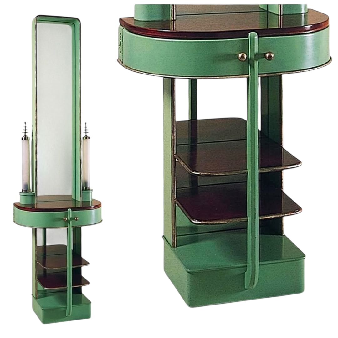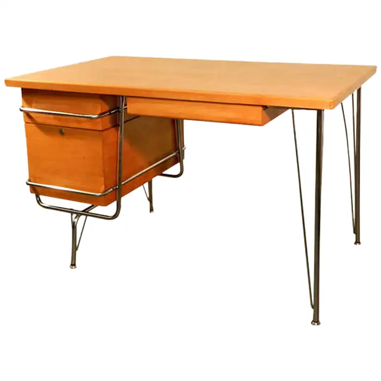 Kem Weber’s style sits at the intersection of Art Deco and Streamline Moderne, defined by aerodynamic forms and functional clarity. He favored long horizontal lines, smooth curves, and an absence of unnecessary ornament. Industrial materials such as tubular steel, chrome, copper, bakelite, and molded wood were central to his visual language. His designs often referenced transportation and technology, borrowing cues from aircraft, trains, and modern machinery. The result is work that feels optimistic, efficient, and distinctly American in spirit.