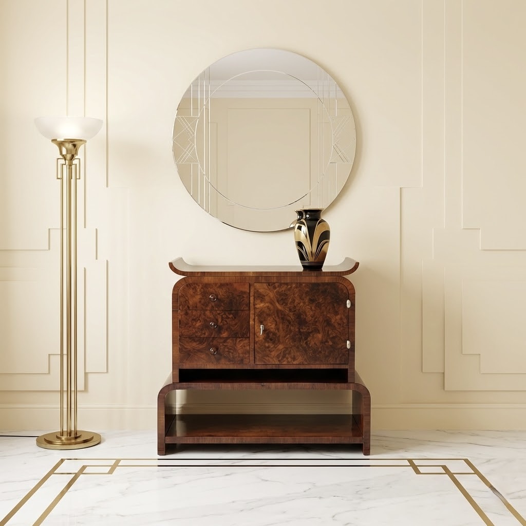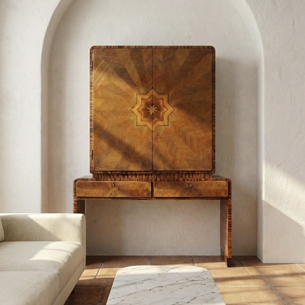 Lajos Kozma was born in 1884 in Hungary and became one of the most distinctive figures in Central European modern design. Trained as an architect, he also worked fluently as a graphic artist, furniture designer, and interior designer. His early education in Budapest grounded him in academic architecture while encouraging artistic experimentation. A formative period in Paris exposed him to modern painting and broadened his visual vocabulary. Kozma belonged to a generation seeking to define a modern yet culturally rooted Hungarian design language. Folk art and vernacular architecture played an important role in shaping his outlook. He viewed architecture and interiors as inseparable parts of daily life. Teaching and publishing became central ways for him to articulate his ideas. He died in Budapest in 1948 after a career shaped by political upheaval and artistic independence.