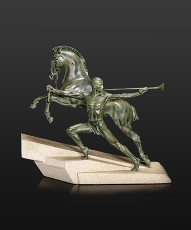 Le Verriers style is defined by streamlined anatomy, crisp contours, and a balance between stylization and realism. His figures often convey a sense of movement frozen at its most elegant point, emphasizing symmetry and athletic grace. He favored strong silhouettes, geometric bases, and dramatic contrasts created through polished surfaces and richly colored patinas. The famous green patina became a hallmark of his workshop, giving his pieces a vivid and unmistakable presence. His work embodies the glamour, discipline, and modern confidence central to the Art Deco aesthetic.