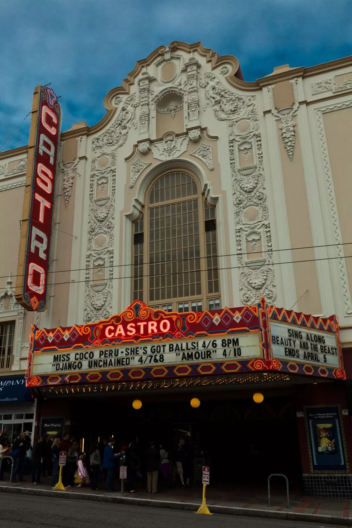 Top: Left: Castro Theatre, San Francisco, Middle: Lobby, 140 New Montgomery, San Francisco, Right: Paramount Theatre auditorium, Oakland. Bottom: Left: 140 New Montgomery, aerial view, Middle: 140 New Montgomery, Pacific Telephone & Telegraph Company Building, 1925, San Francisco, Right: Patent Leather Bar and Orchid Room at the St. Francis Hotel in San Francisco
