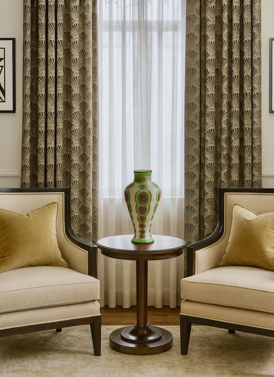 This vibrant Art Deco vase was created for La Maîtrise, the decorative arts workshop of Galeries Lafayette in Paris. La Maîtrise was established to promote the finest French design and was directed by Maurice Dufrene, one of the most important figures in the development of modern French style. Under Dufrene’s leadership the workshop produced forward looking works that brought refined artistry and bold creativity to a wide audience.