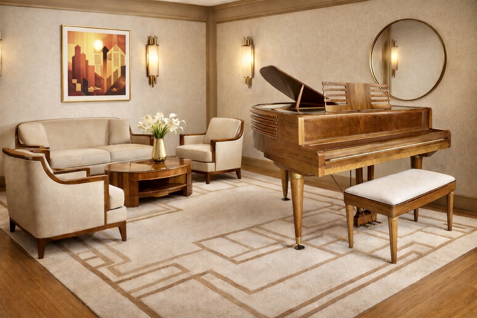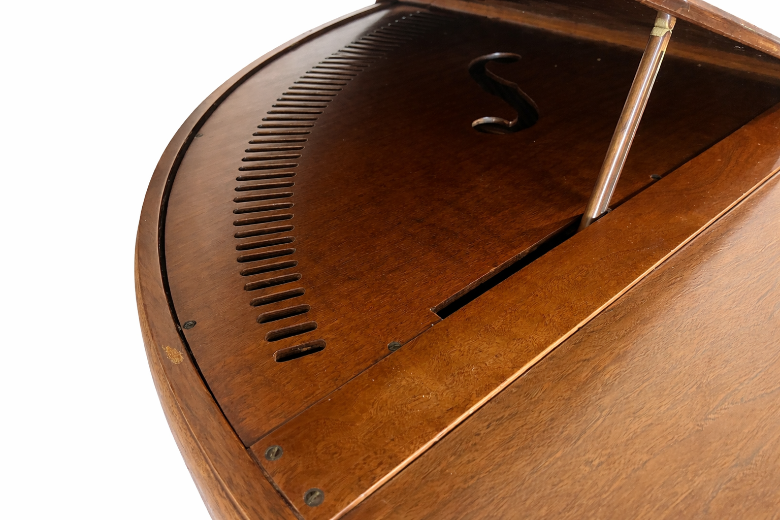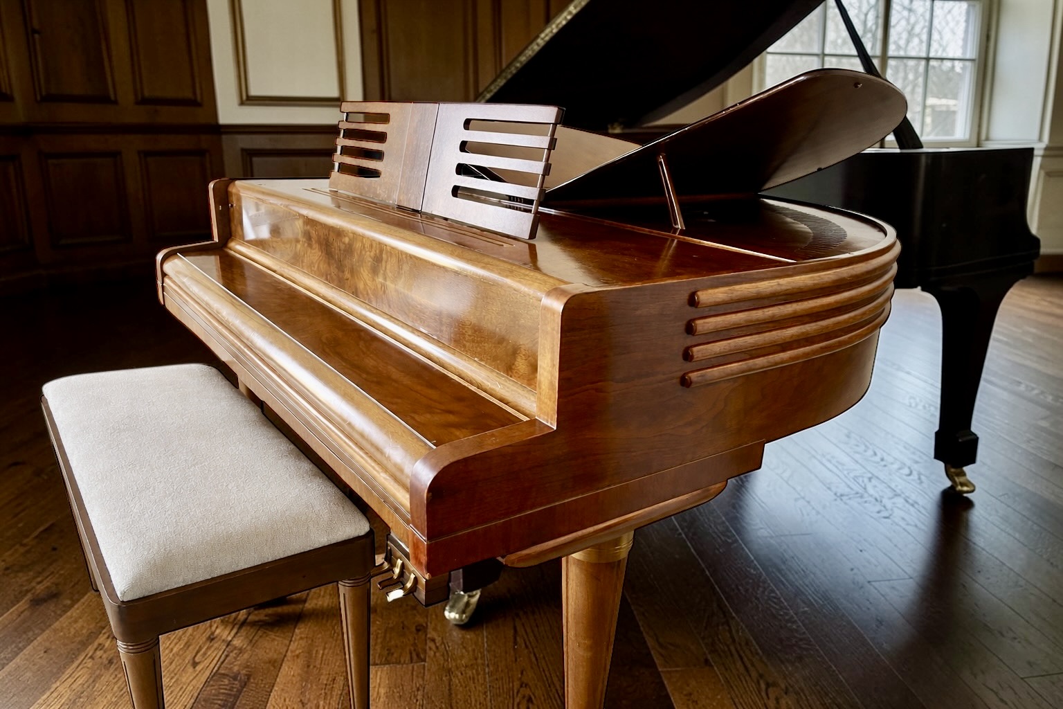 Adding to its appeal, this piano comes from the family of the original owner, where it was cared for throughout its entire life. That continuity of ownership helps explain both its condition and the evident pride with which it was maintained. The piano has been recently tuned and remains in excellent working order. It has also benefited from professional technician care, with the soundboard maintained, restringing completed, and adjustments attended to as indicated by its most recent service. All of the keys are in great original condition no cracks on the keys. This is a rare opportunity to acquire one of the most iconic American Art Deco piano designs, a superb combination of sculptural beauty, musical quality, and genuine period elegance, ready to be enjoyed for generations to come.