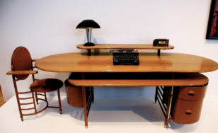 By the 1930s, industrial designers were reimagining the office through the use of new materials, especially Bakelite, which opened the door to forms that had once been difficult or costly to produce. Molded into sleek curves and softened silhouettes, Bakelite gave office accessories a futuristic quality that felt entirely in step with the age. Designers often paired these molded plastics with chrome or steel, creating a sophisticated contrast between warm sculptural surfaces and cool reflective metal. Pencil sharpeners, desk sets, clocks, lamps, telephones, and staplers were no longer seen as purely practical objects, but as expressions of speed, efficiency, and modern taste. In these streamlined forms, the office became a stage for design, where everyday tools embodied the promise of a cleaner, faster, and more elegant future.