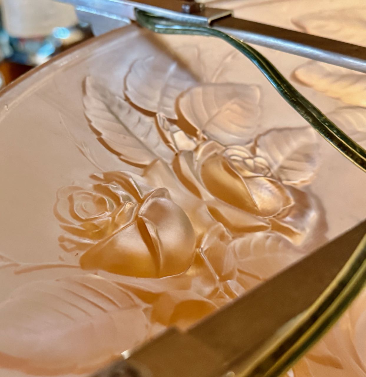 Muller Frères chandeliers in peach-pink glass are highly sought after and seldom appear on the market. This piece not only represents the exceptional artistry of Luneville glassmaking but also embodies the period’s embrace of both luxury and modern design. Its condition, signature, and rare coloration make it a standout addition for serious collectors of Art Deco lighting.