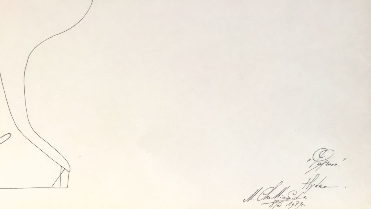 This striking original ink drawing by Mihail Chemiakin, created in Paris in 1979 "HYDRA", is a superb example of the artist’s mastery of line, abstraction, and surrealist figuration. Executed with a continuous, fluid stroke, the figure suggests an anthropomorphic rabbit — a fusion of human and animalistic forms with elongated, exaggerated ears and an abstracted, almost sculptural body.